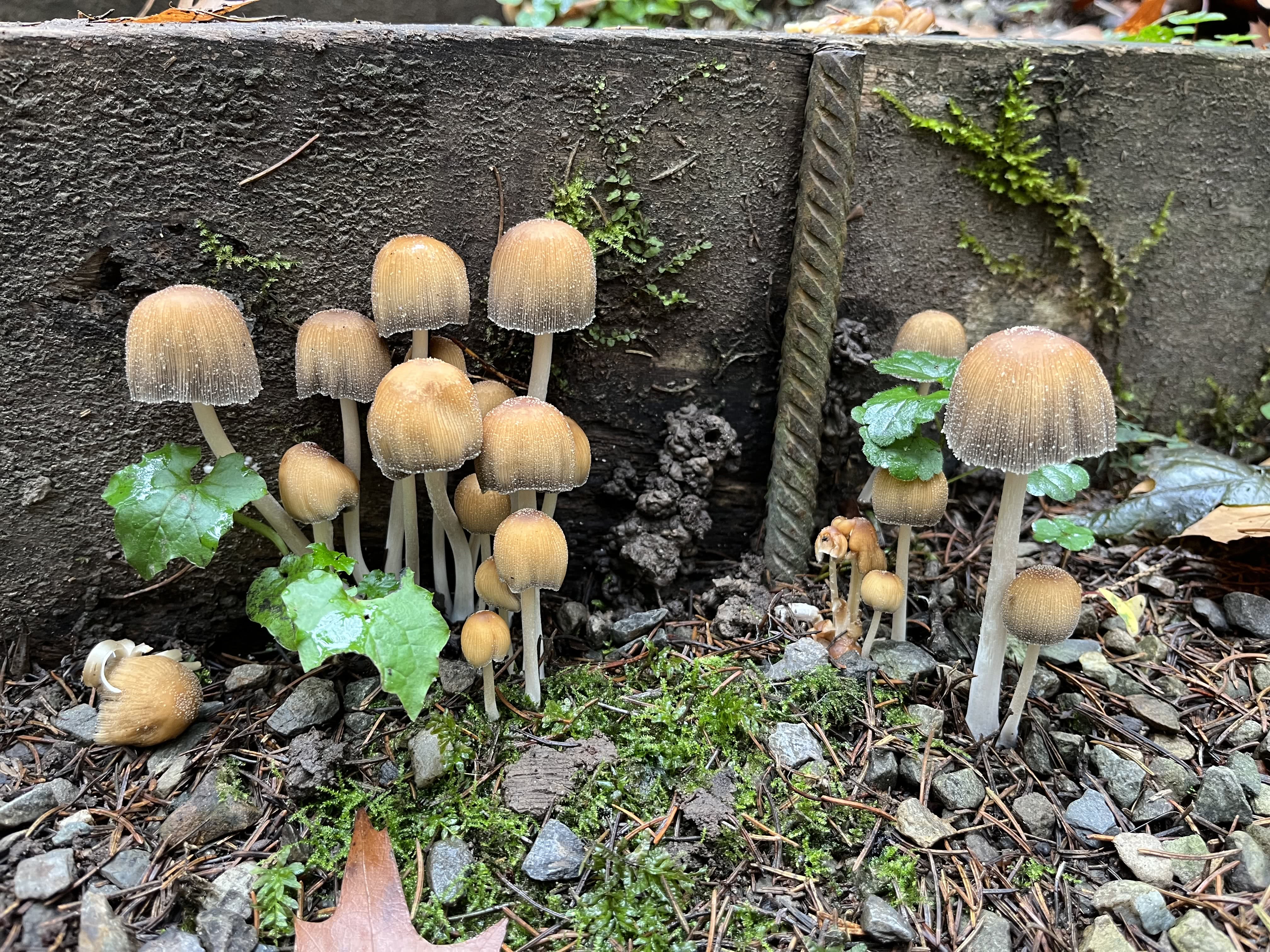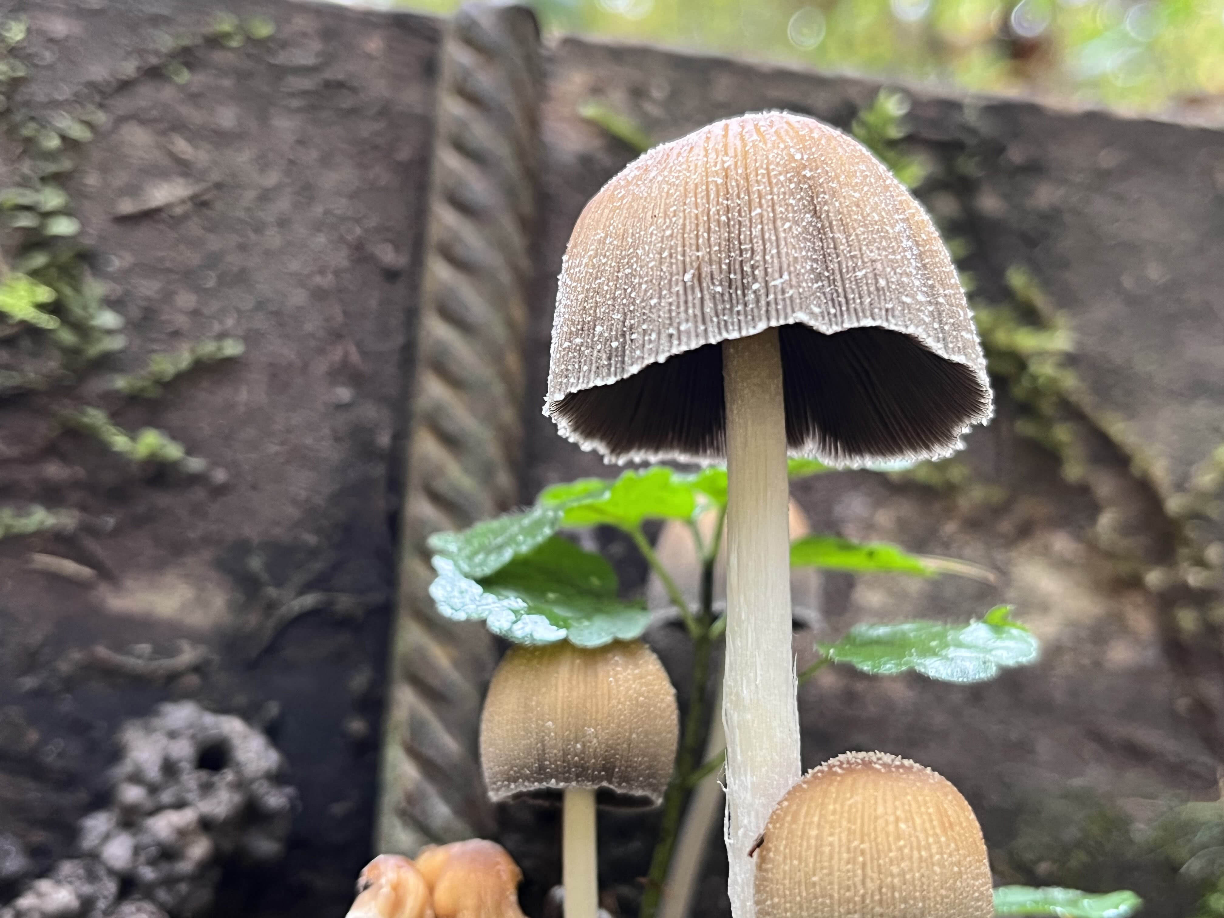 Coprinellus micaceus est un champignon commun et magnifique. On le reconnaît facilement à ses chapeaux jaune-brun, à son mode de fructification en grappe, à ses branchies déliquescentes et aux fines granules ressemblant à des micas qui ornent les chapeaux frais (bien que la pluie emporte souvent les granules). Selon leur stade de développement, les chapeaux des champignons peuvent avoir une forme ovale, en cloche ou convexe. Pousse sur les souches ou les racines d'arbres morts. Les racines sont enfouies, ce qui donne l'impression qu'elle pousse sur l'herbe. Le champignon est également associé aux sols perturbés ou aménagés, tels que les bords de routes et de chemins, les jardins, les chantiers de construction et les abords des parkings ; on a également constaté qu'il se développait à l'intérieur sur du bois pourri dans des environnements humides. Bien qu'elle puisse pousser à n'importe quel moment de l'année, elle est plus fréquente au printemps et à l'automne, ce qui coïncide avec l'humidité plus élevée résultant des pluies de printemps et d'automne.