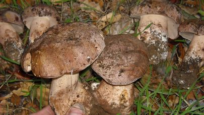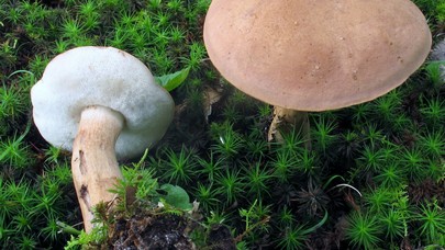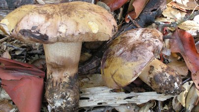 3-7 cm de long ; 1.5-2 cm d'épaisseur ; plus ou moins égales ; blanchâtres dans l'ensemble lorsqu'elles sont jeunes, développant des taches brunâtres et devenant parfois brunâtres avec le développement ; généralement finement réticulées près de l'apex, mais parfois non réticulées ; chauves ; mycélium basal blanc.