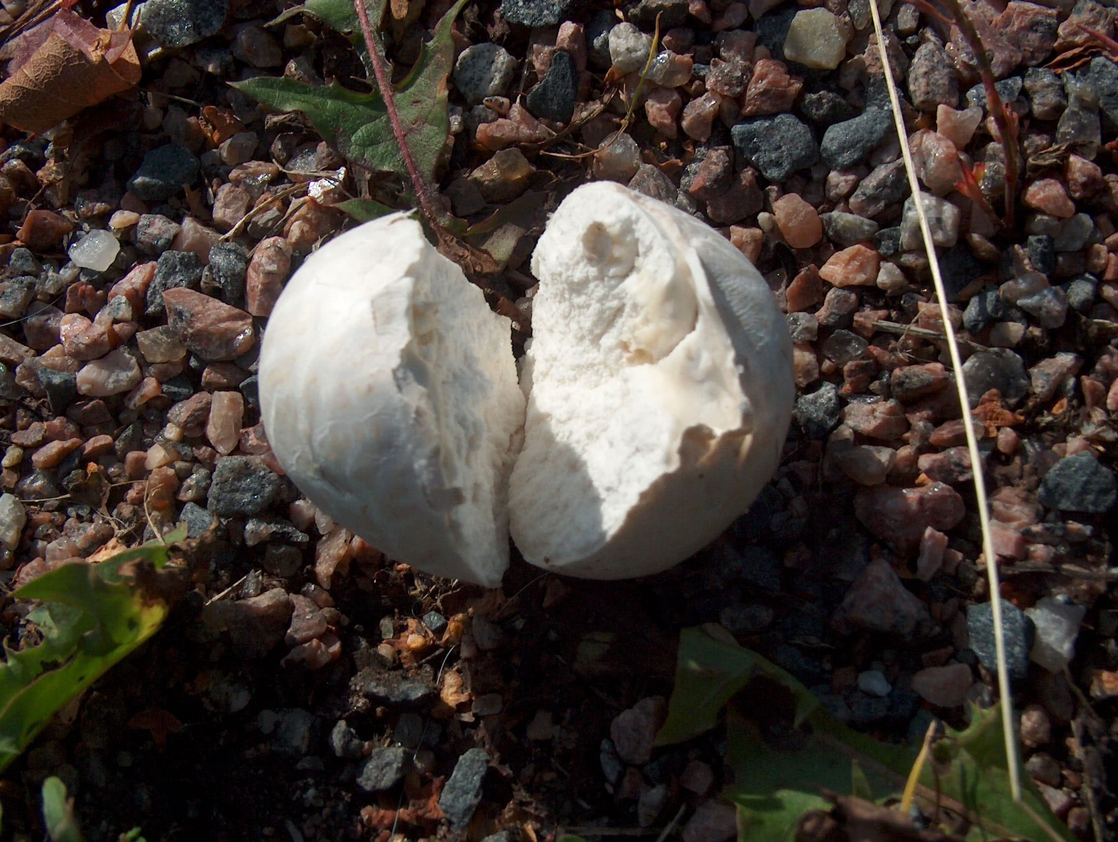 3-6 cm de diamètre. Le corps du fruit, à peu près sphérique, est légèrement pointu à la base. Bien que dépourvu de base stérile, le corps du fruit est attaché au substrat par un seul cordon mycélien qui se rompt souvent, laissant le corps du fruit libre de rouler dans le vent. La paroi externe est d'abord blanche, mais elle se détache rapidement en grandes écailles à maturité pour exposer la paroi interne brun pourpre foncé à noirâtre qui renferme la masse de spores. Ces spores sortent par un pore apical, qui est causé par des fissures et des craquelures importantes. La gléba est souvent brun violet foncé. Le capillaire est très ramifié avec des éléments dendroïdes bruns.
