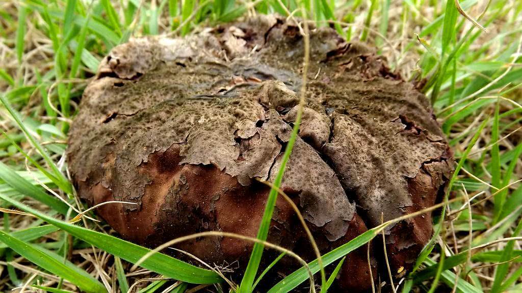 8-17 cm de haut et 8-20 cm de large à maturité ; en forme de boule à l'état jeune, mais développant rapidement une partie basale épaisse légèrement plus étroite que la partie supérieure ; à maturité, elle a généralement la forme d'une poire inversée ou d'une miche de pain.