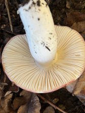 A une chair nettement plus ferme qui a souvent un goût de menthol, généralement une tige rosâtre et une poussière de spores de couleur crème clair.