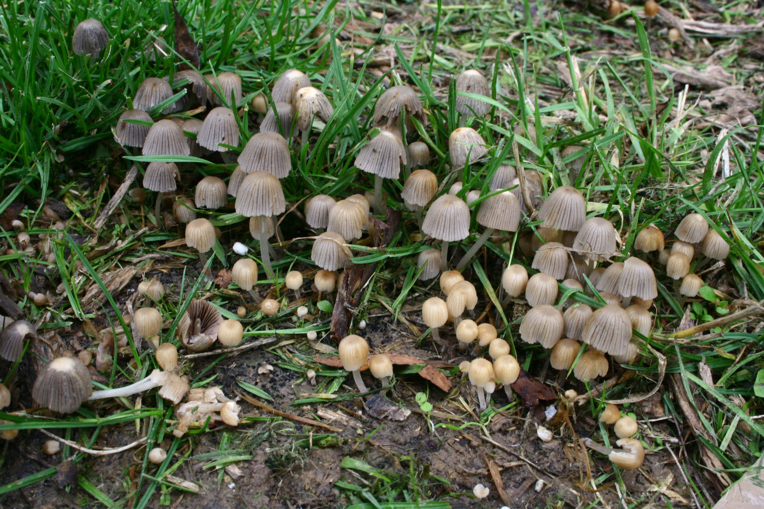 Coprinellus disseminatus est une petite espèce de coprinoïde dont les branchies ne se transforment pas en encre noire ; il est même possible d'obtenir une impression de spores, plutôt qu'une masse noire et gluante de papier mouillé. Ce champignon fructifie typiquement en grappes à la base des souches, parfois en nombre impressionnant. Comestible, mais insignifiant.