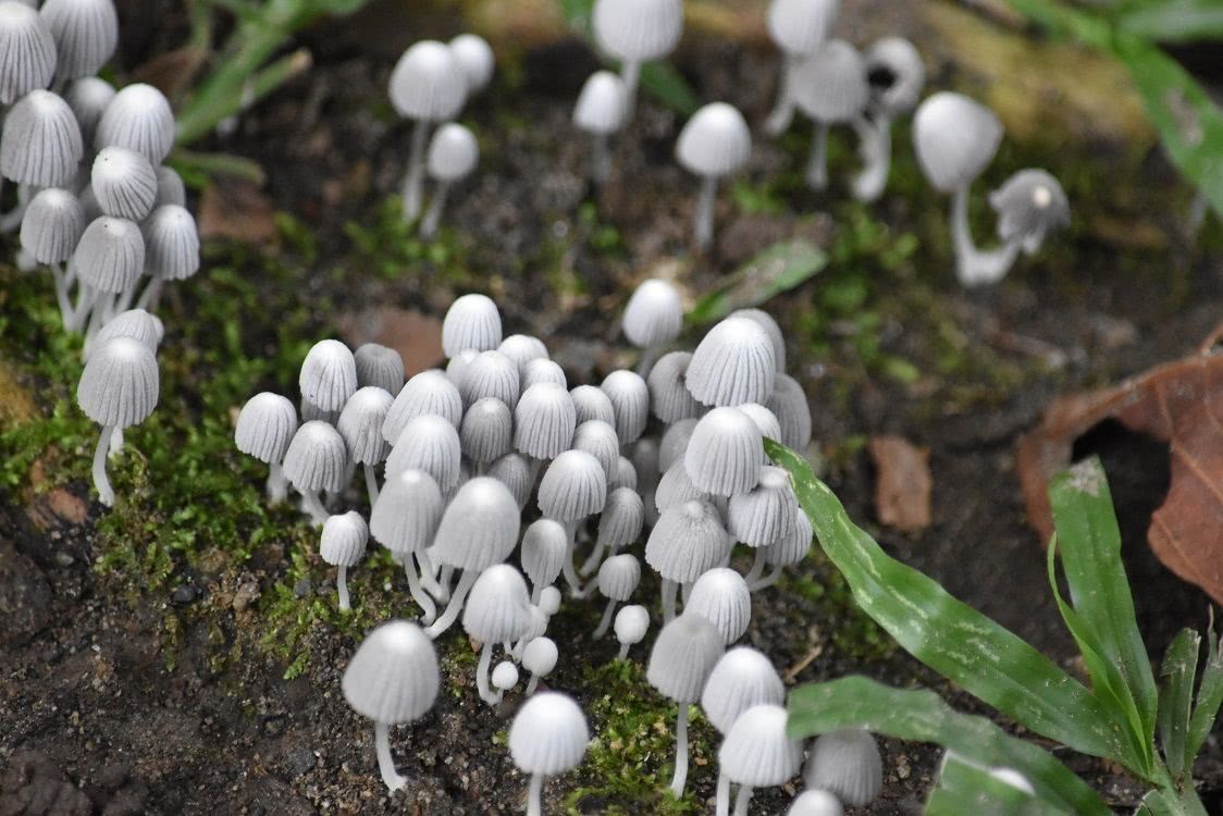 Autres noms: Coprinus non encré, bonnet de fée, petits casques, bonnet de crumble, bonnets d'encens de troupe.