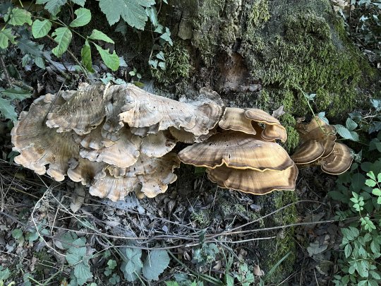 Meripilus giganteus est un grand champignon qui pousse sur les souches d'arbres et à la base de certains types de feuillus, en particulier les hêtres. Ses chapeaux peuvent mesurer jusqu'à un demi-mètre de large.