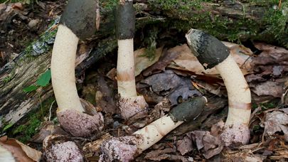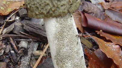 Semblable à un "œuf" blanchâtre à rosâtre ; lorsqu'il est tranché, il révèle la présence d'une substance gélatineuse dans laquelle est enfermé le chevalier puant.