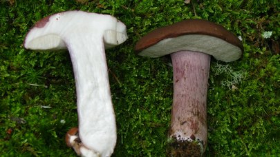 Il s'agit d'un champignon solide et relativement grand - le diamètre du chapeau peut atteindre 15 cm (5.9 in), avec une surface poreuse blanche qui devient ensuite rose, et un mycélium blanc à la base de la tige.