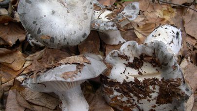Immédiatement sous la cuticule du chapeau, la chair du chapeau est imbibée d'eau ; ailleurs dans le chapeau, elle est teintée de gris avec un reflet, tandis que dans le stipe elle est d'un blanc terne.