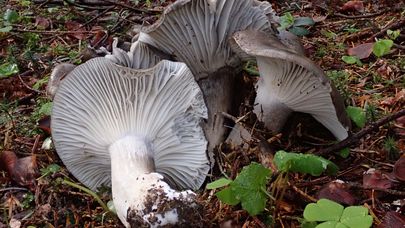 Les branchies larges et espacées ont une attache adnée au stipe et deux niveaux de lamelles intermédiaires (branchies courtes). Les branchies sont d'abord blanches avant de devenir grises à gris bleuâtre avec l'âge.