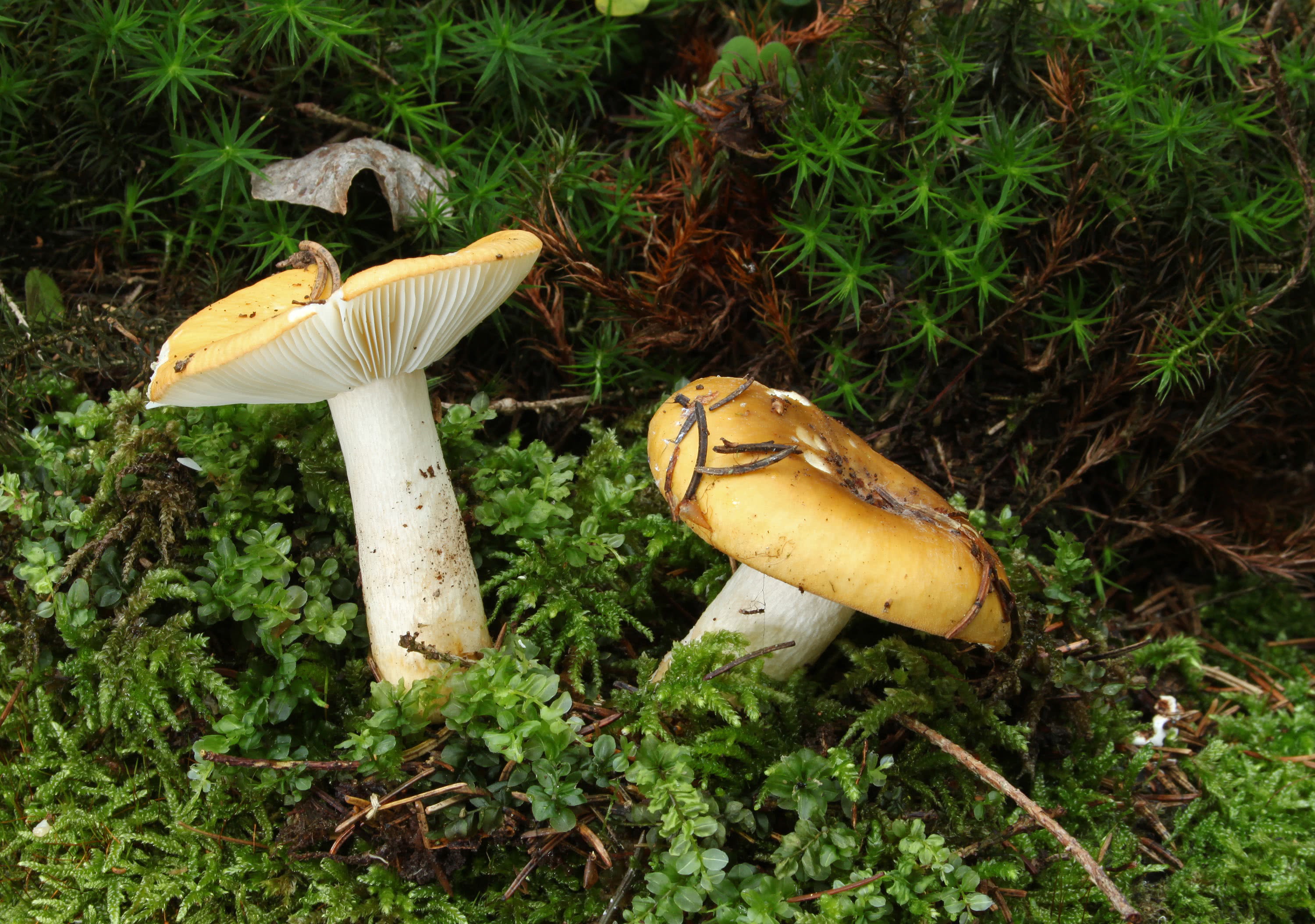 Russula claroflava se trouve sur le sol humide sous les bouleaux. Elle a une forte odeur fruitée, a des branchies jaunâtres et fournit une empreinte de spore jaune-ocre.