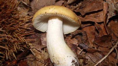 Russula ochroleuca est un membre du genre Russula. Un groupe connu sous le nom de "brittlegills". On la trouve dans tous les types de forêts du milieu de l'été au début de l'hiver. Il est comestible, mais son goût est médiocre et parfois assez poivré. Ce champignon abondant n'est donc pas très prisé pour sa valeur culinaire.