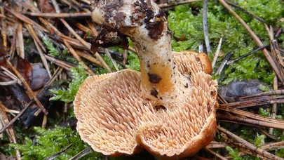 Le chapeau de H. La couleur de l'Hydnum rufescens est plutôt rousse que beige.