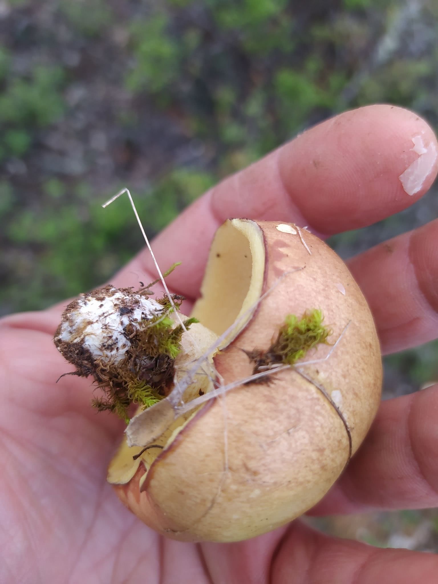 La cuticule est plus pâle, presque blanchâtre, surtout chez les jeunes spécimens, et les tubules sont légèrement décurrents sur la tige.