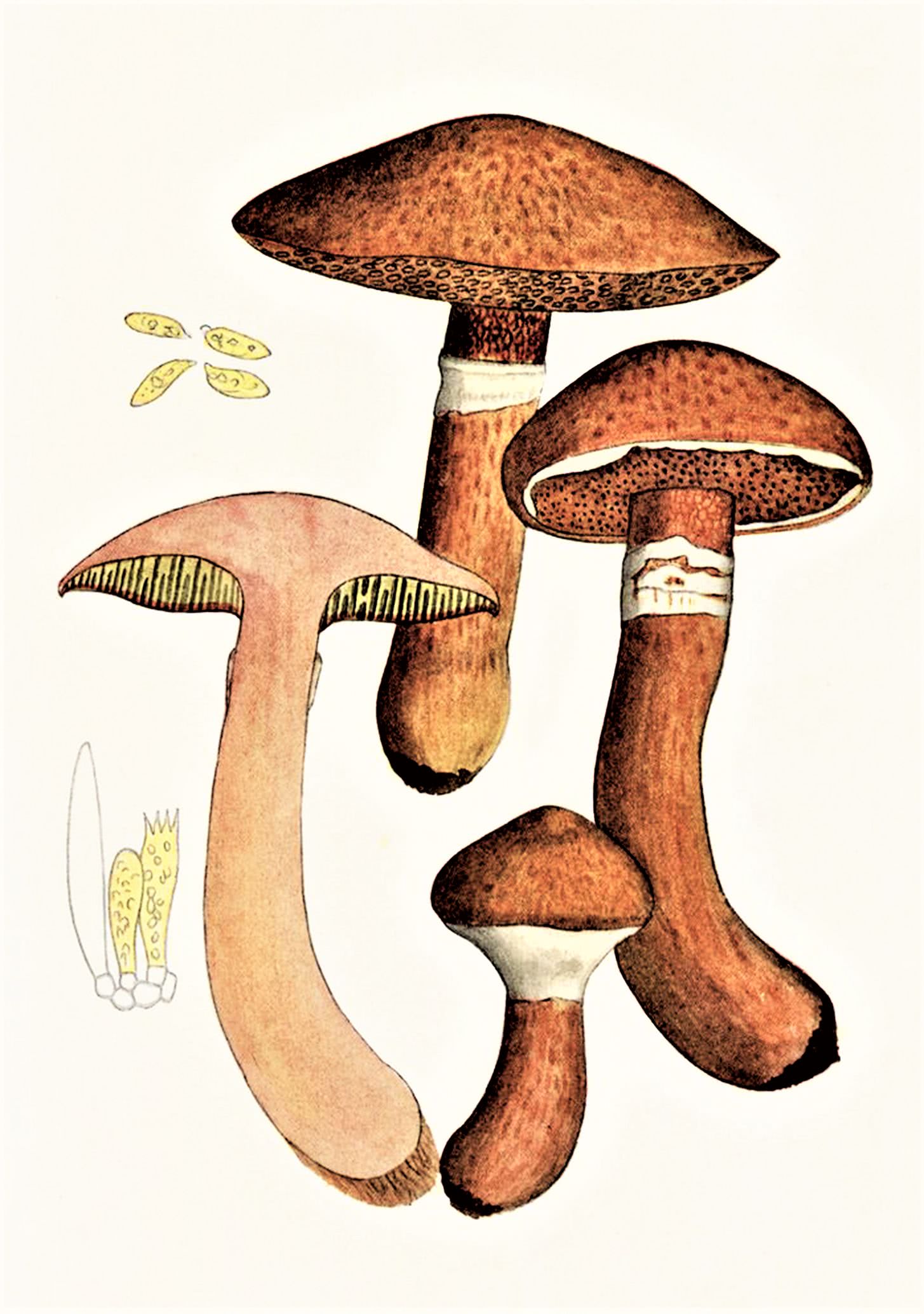 Cylindrique ou clavé, presque concolore avec le chapeau, avec un anneau plus ou moins distinct.