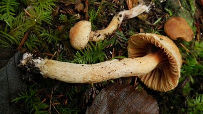 Chroogomphus tomentosus (Gomphidus tomentosus) est un champignon très répandu. Il a une calotte orange terne avec une forme de piquet ou de clou émoussé et 3.5″(9cm) de taille. Les branchies sont plus proches des bolets que des autres champignons à branchies et se sont développées selon un processus distinct, de sorte qu'elles semblent distantes, épaisses et même primitives, décurrentes. C'est un habitat des forêts de conifères, particulièrement associé au douglas et à la pruche. Comestible mais plutôt insipide.