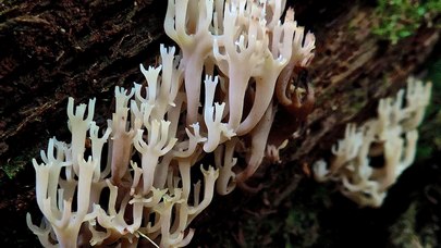 Également connu sous le nom de champignon faux-corail, récemment déplacé du genre "Tremellodendron", ce champignon a tendance à pousser en grappe fimbrillaire dense à partir du sol.