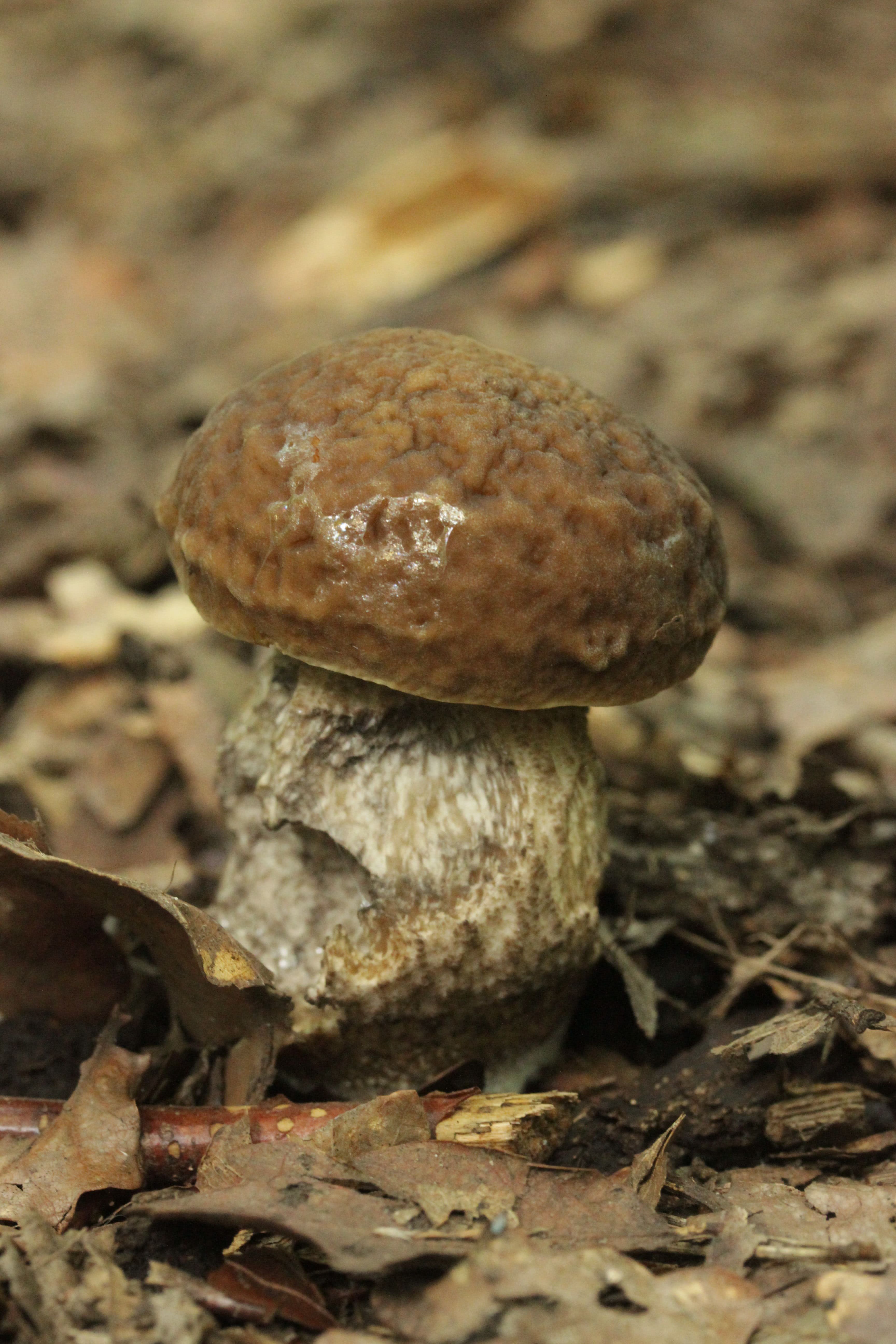 Plus petit que de nombreux champignons Leccinum, le diamètre du chapeau varie entre 4 et 9 cm lorsqu'il est complètement déployé, restant largement convexe plutôt que de s'aplatir complètement. La surface est généralement ridée et parfois fissurée. Lorsqu'elle est humide, la surface du chapeau est collante ou légèrement grasse ; en séchant, elle devient mate ou très finement molletonnée.
