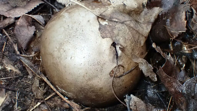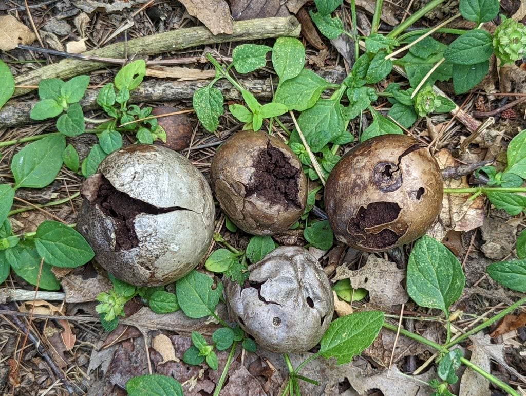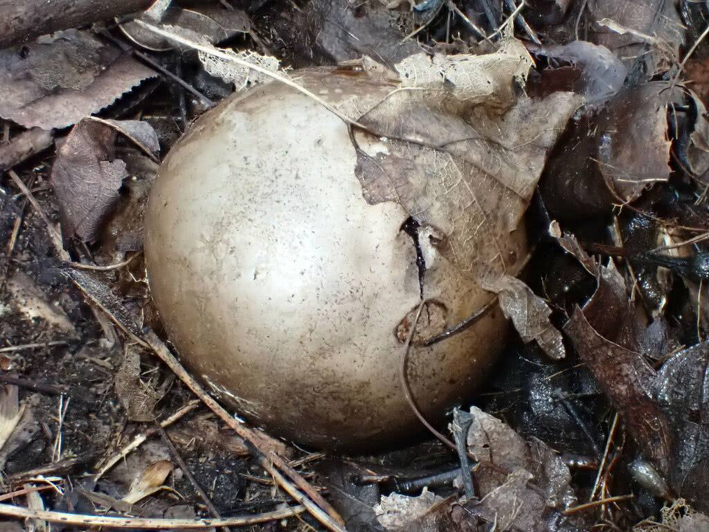 4.0-8.0 cm de large, globuleuse à légèrement comprimée, dépourvue de base stérile, attachée au substrat par un cordon mycélien blanc ; péridium mince, <1.0 mm d'épaisseur ; exoperidium blanc, glabre à tomentosé, devenant brun terne, parfois squamuleux à aréolé, finalement brun foncé à brun acajou ; exoperidium persistant, souvent présent à maturité, se détachant graduellement, absent seulement dans le matériel altéré ; endopéridium gris métallique, parfois des taches brun bronze à brun pourpre ont été recouvertes par des restes d'exopéridium ; gléba blanche, devenant olivâtre, puis brun foncé à légèrement pourpre à maturité, texture ferme ; spores libérées par les fissures et les déchirures apicales ; base stérile et subgléba absentes ; odeur et saveur douces.