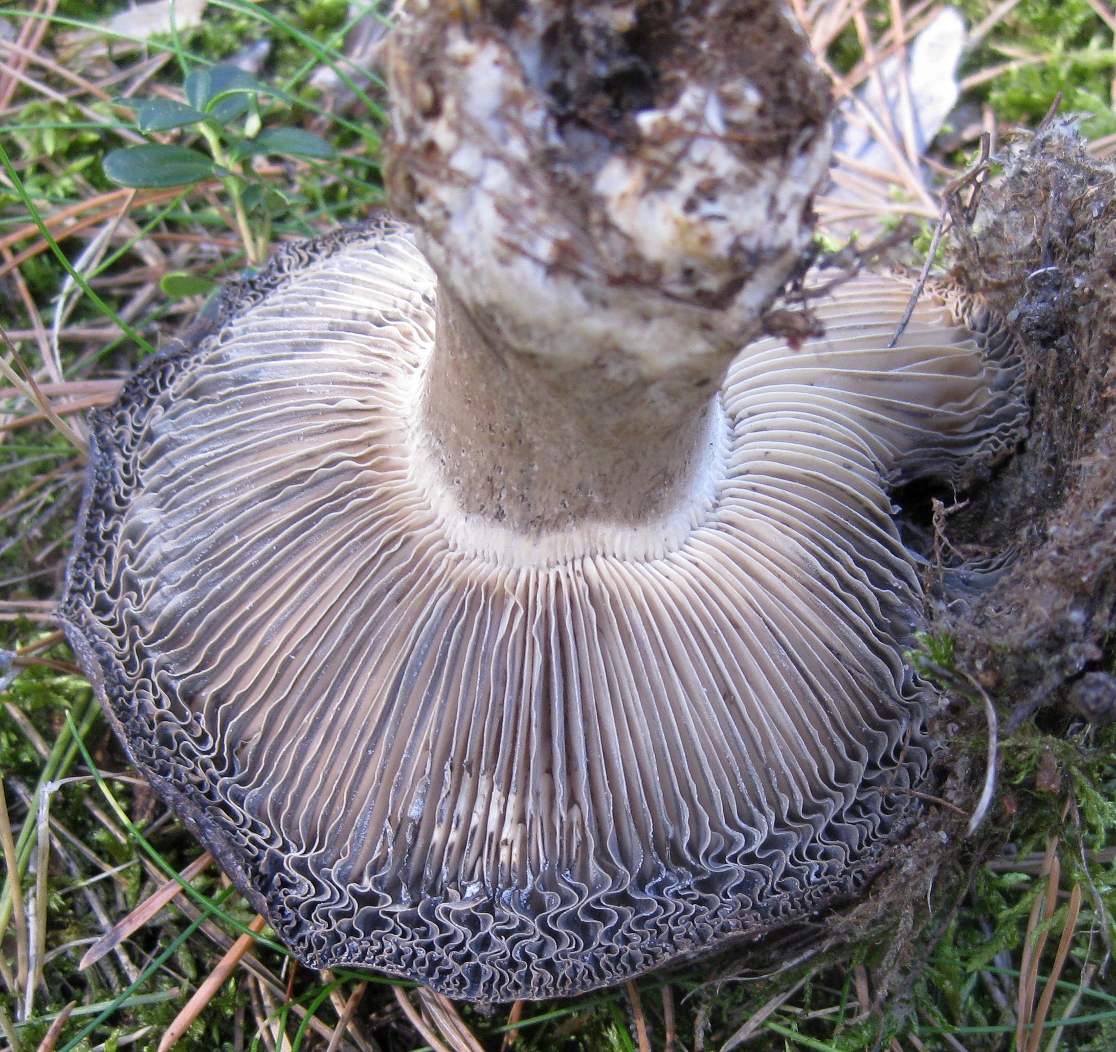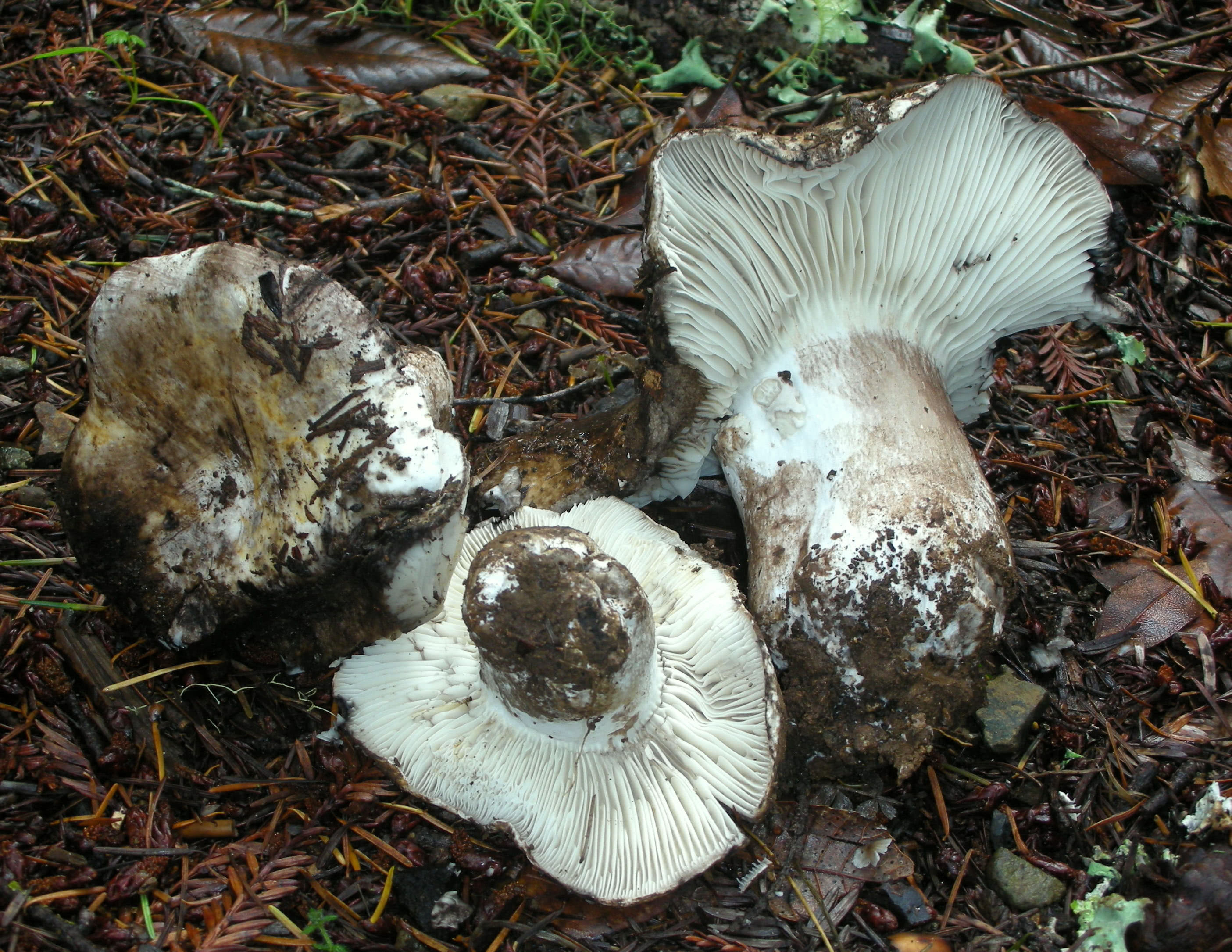 Russula dissimulans, Russula densifolia, et Russula nigricans