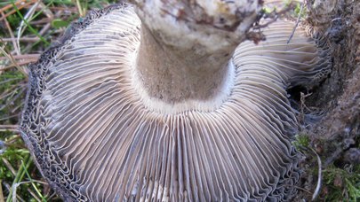 Possède un chapeau visqueux : il peut rougir légèrement avant de devenir brun fumé ou noir grisâtre.