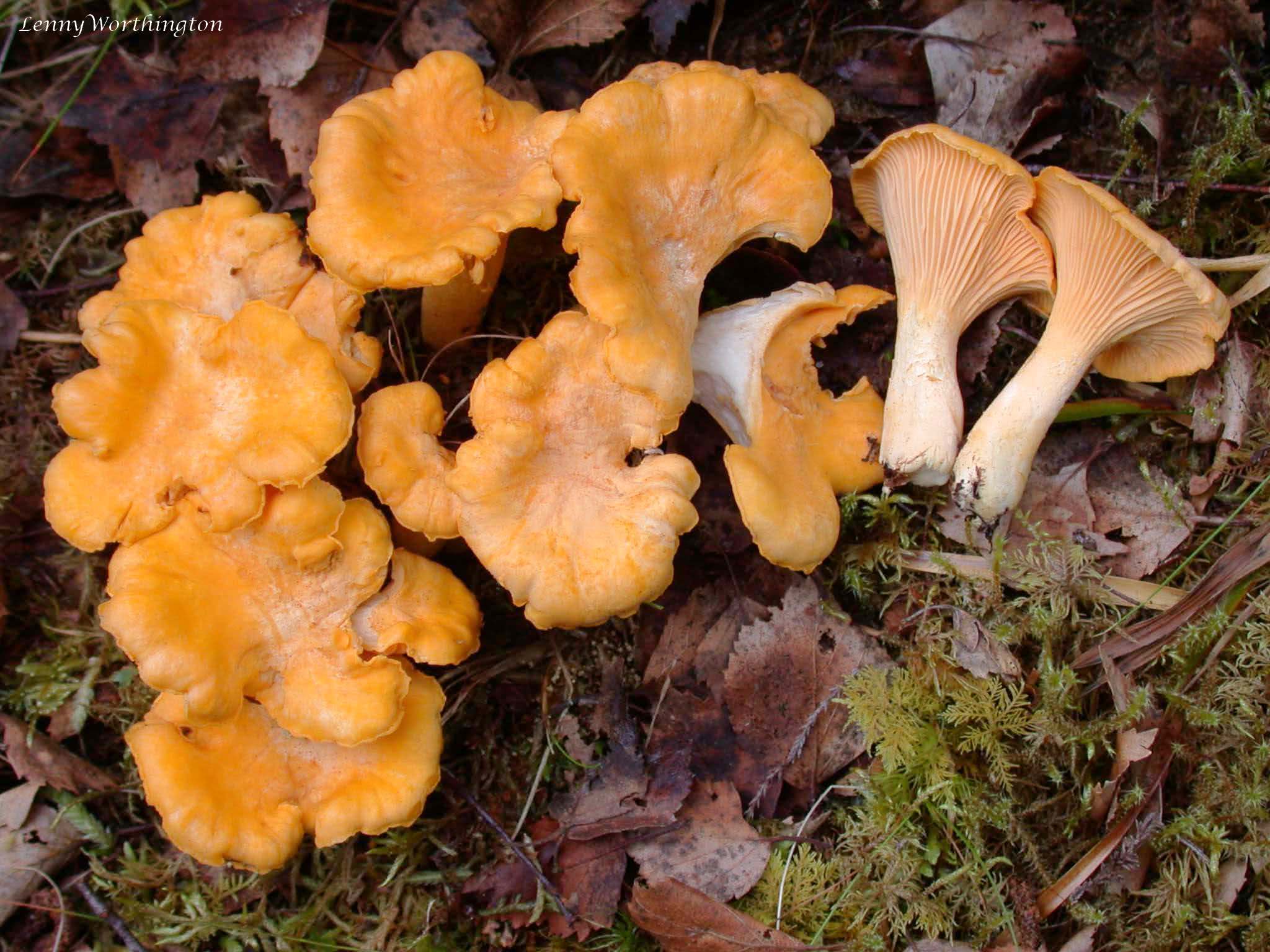La surface du chapeau est veloutée, la couleur est beaucoup plus brillante, et elle est toujours plus claire le long du bord qu'au centre. La vraie couleur de la chanterelle va du jaune clair au jaune-orange, et le chapeau est uniformément coloré.