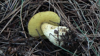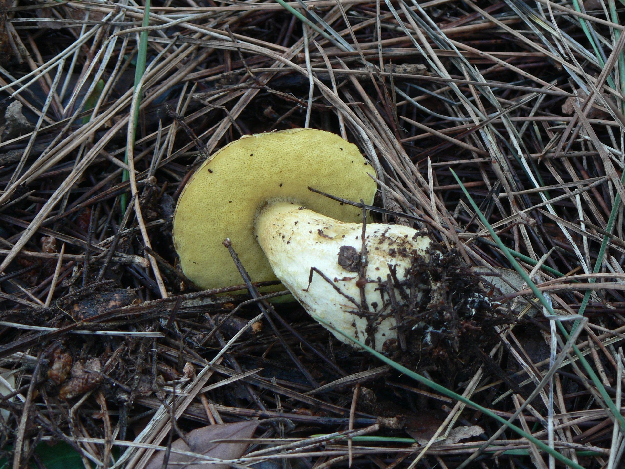 Les tubes sont plus ou moins libres de la tige, de 1 à 2 cm (0.5 à 1 in) de long et de couleur jaune pâle à jaune ochracé. Les pores sont petits et arrondis, concolores avec les tubes, se colorant lentement en brun rouille et finalement en brun grisâtre lorsqu'ils sont manipulés ou avec l'âge.