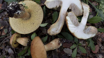 Également similaire, mais fructifie généralement plus tôt dans la saison en association avec des chênes à feuilles caduques. Il produit des corps fructifères plus minces et plus allongés, avec une cuticule en forme de chapeau qui a tendance à se fissurer largement à maturité.