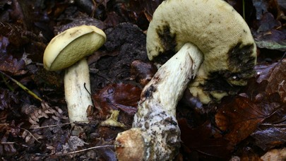 Surface du chapeau brun jaunâtre, pousse dans les forêts de chênes et d'épicéas.