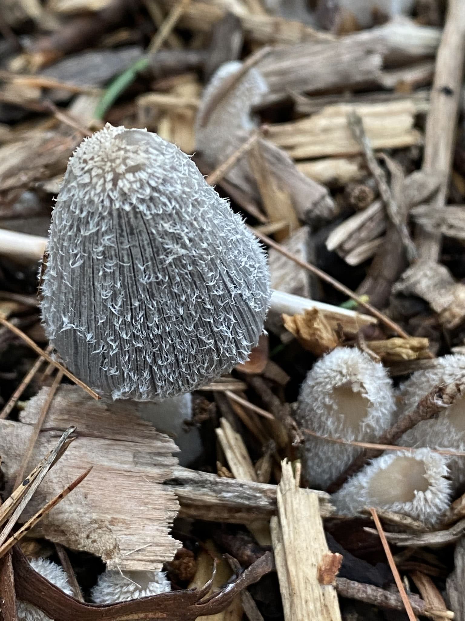 Jusqu'à 4 cm de diamètre à maturité et en expansion ; ovale et minuscule à l'état jeune, s'élargissant pour devenir largement convexe ou en forme de cloche et finalement plus ou moins plat ; gris à noir ; d'abord recouvert d'une couche dense de poils argentés (un voile universel) qui se divise en taches au fur et à mesure que le champignon grandit et peut finalement disparaître ; la marge finement bordée se fend au fur et à mesure que les branchies se dissolvent.