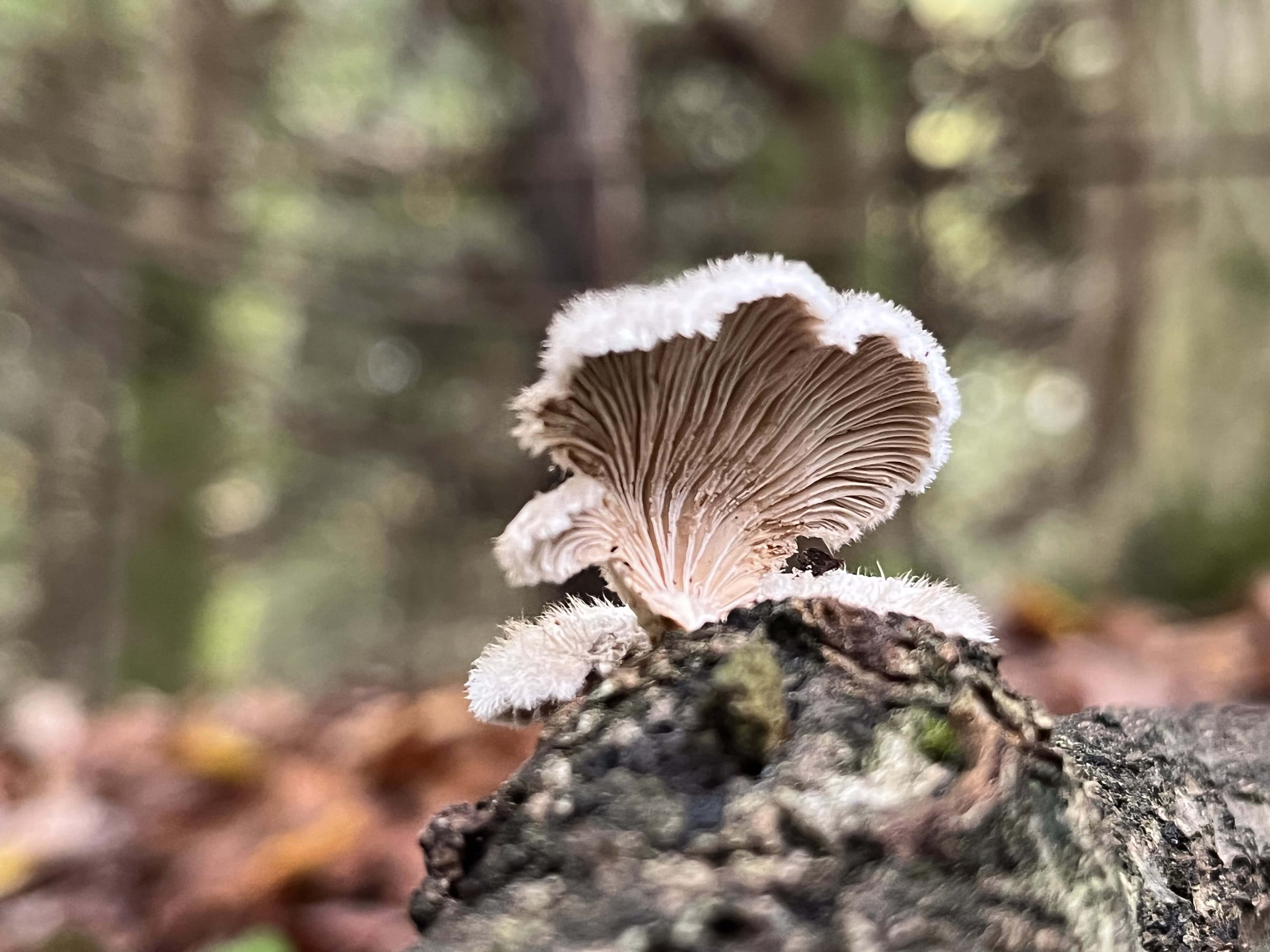 Schizophyllum commune est une espèce de champignon du genre Schizophyllum. Le corps du fruit est une structure de cupules radiées comprimées. Ce qui semble être des branchies est le bord de deux cupules adjacentes avec un tissu marginal proliférant, ce qui donne l'impression que la "branchie" est fendue. Les chapeaux sont blancs ou grisâtres avec des poils, sans tiges. Pousse sur les arbres feuillus malades, mais est tout aussi commun sur le bois mort.