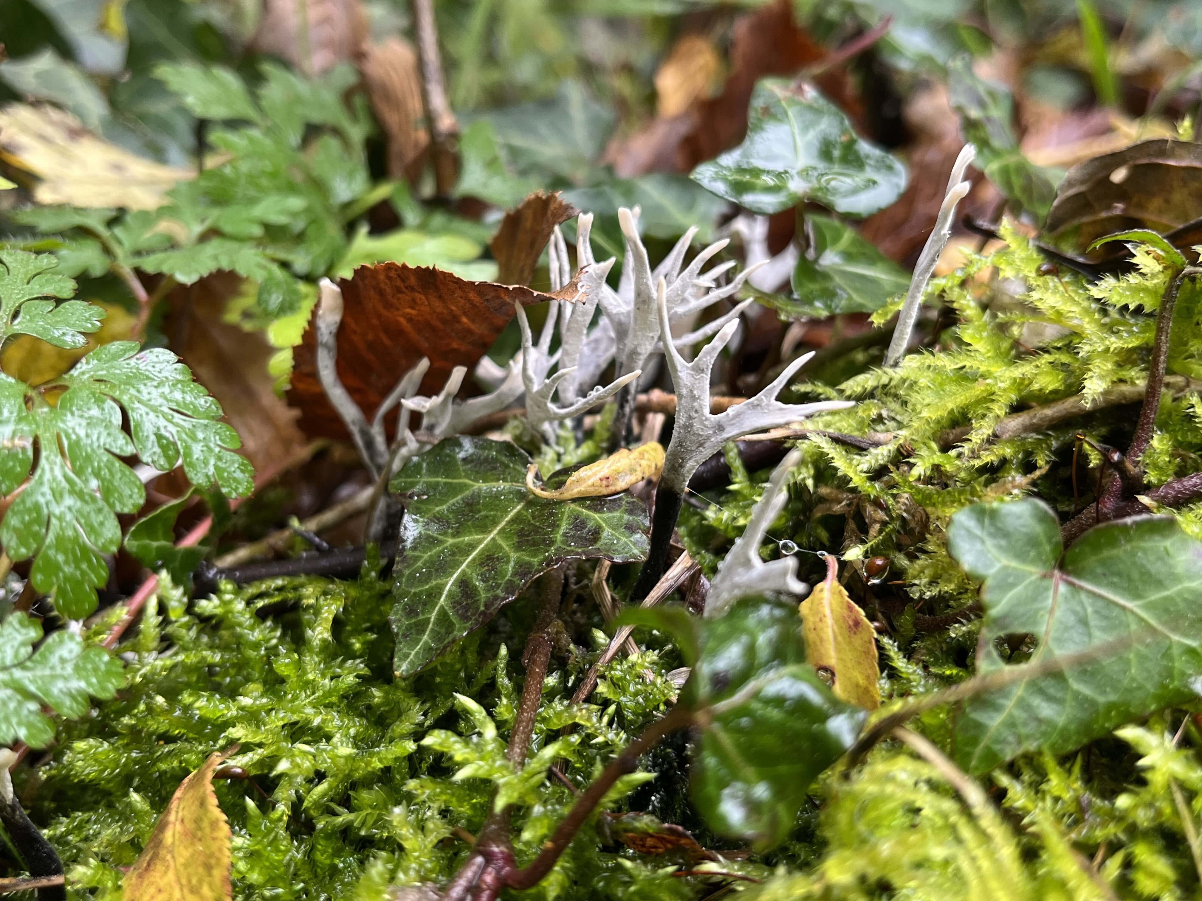 Le nom du genre Xylaria vient du nom grec Xýlon qui signifie bois - de la même source que le mot xylème, qui est le bois d'un arbre qui transporte l'eau et les nutriments des racines vers les branches, les rameaux et les feuilles. L'épithète spécifique hypoxylon vient de hypo- qui signifie en dessous (ou moins que) et de -xylon qui signifie bois. Comme vous le voyez, les noms de genre et d'espèce indiquent clairement l'objet des désirs de cette pourriture.