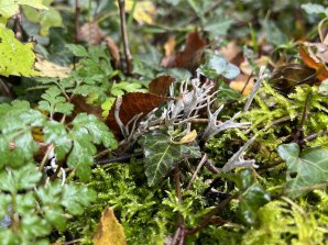 Ce champignon peut être trouvé tout au long de l'année. La forme la plus couramment rencontrée, avec des extrémités de branches blanchâtres et poudreuses, est le stade asexué du champignon. Le stade sexuel est moins visible car il n'a pas de couleur blanche ; il est généralement moins ramifié (voire pas du tout) et présente une surface rugueuse et verruqueuse provenant de nombreuses petites structures en forme de flacons qui produisent les spores en forme de haricots rouges.