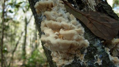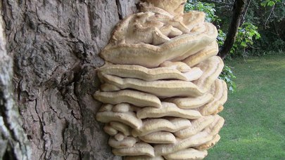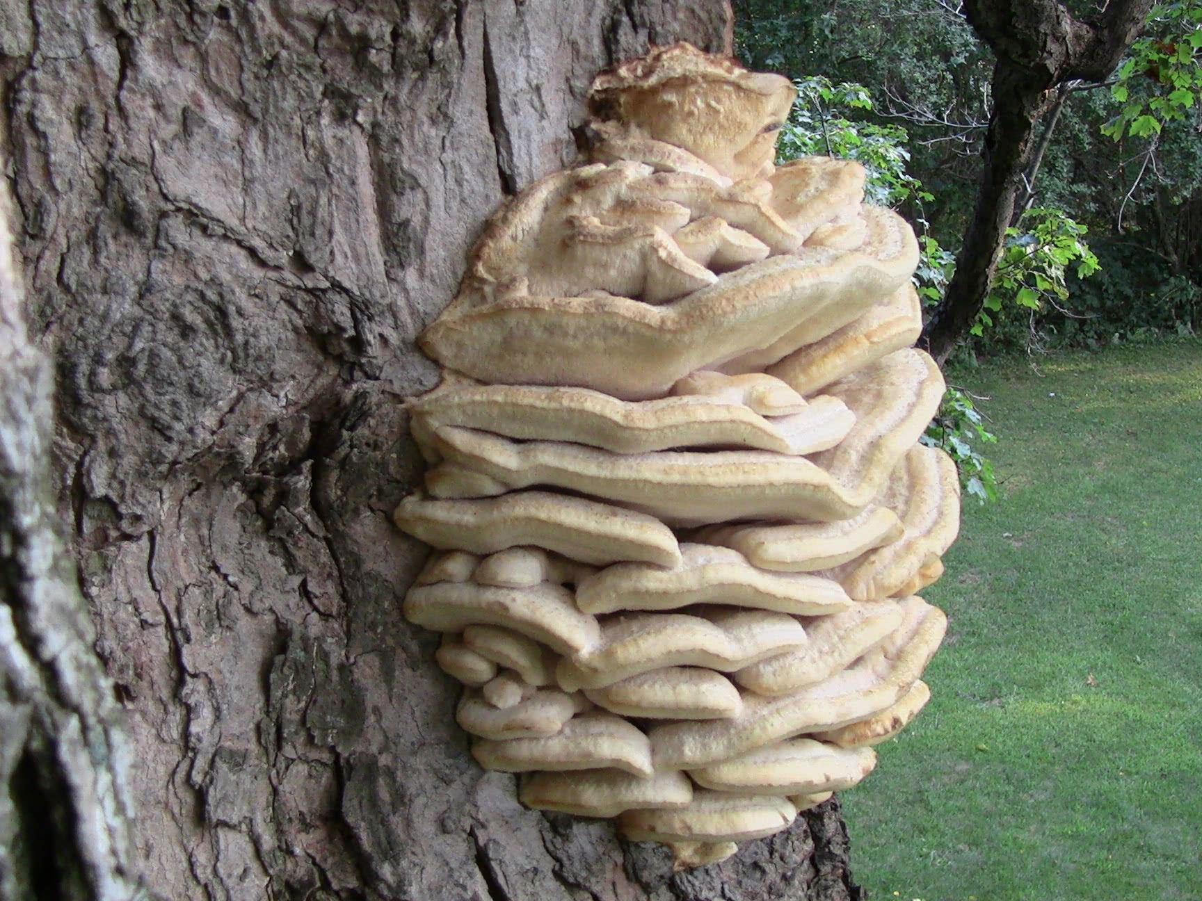 Climacodon septentrionalis ressemble à un polypore jusqu'à ce qu'on remarque les épines. Il provoque une pourriture du cœur des arbres dans les zones urbaines, les parcs et les forêts.