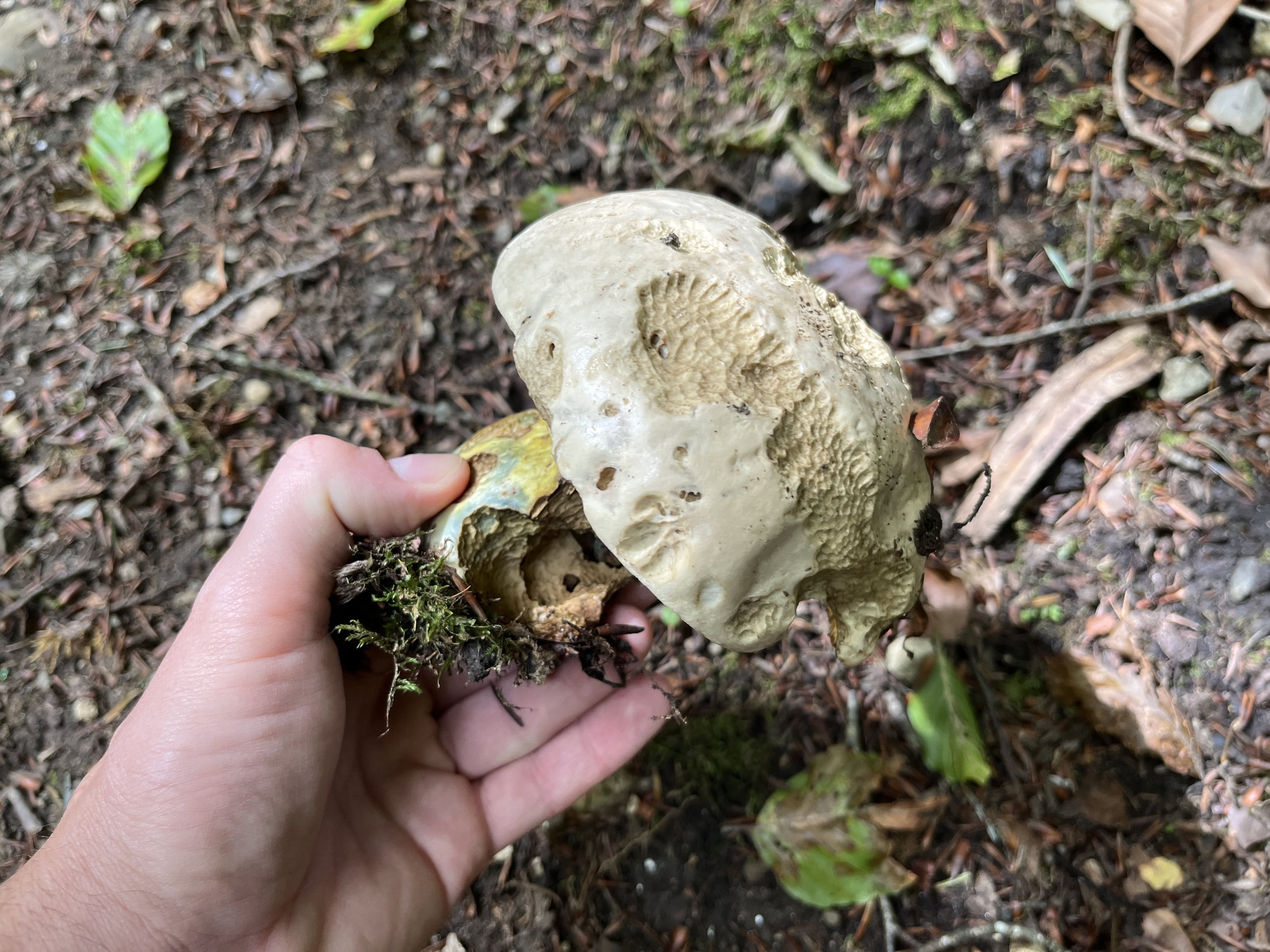 Le chapeau des spécimens plus matures est souvent strié, cannelé ou couvert d'écailles, mais lorsque vous retournez le champignon, vous pouvez voir les jolis pores jaune vif et des morceaux de rouge sur le pied. Lorsqu'elle est coupée en deux, la base de la tige est parfois rouge et le reste de la chair devient lentement bleue, puis peu après le bleu commence à s'estomper.