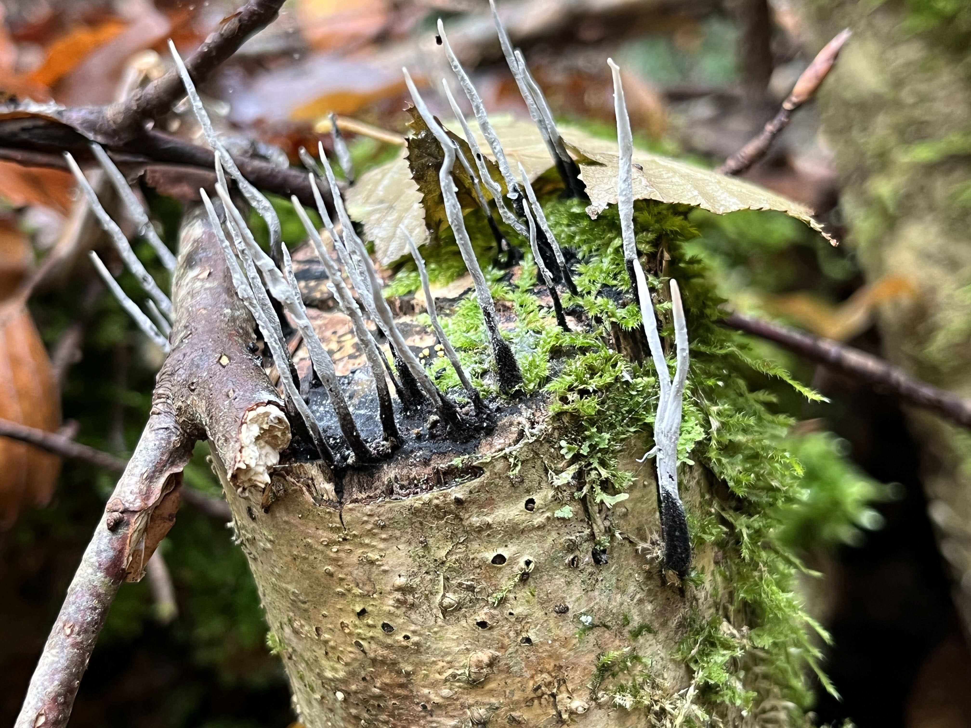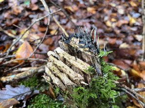 Plus petite et plus rare, fructifie sur les tiges mortes des fougères et des plantes herbacées.