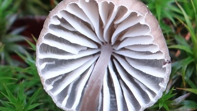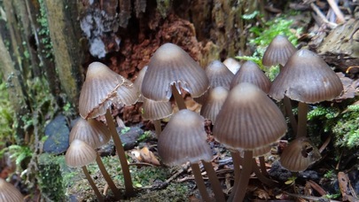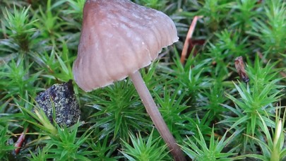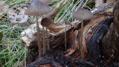 Autres noms: Casque de fée des souches, Mycena à points rouges.