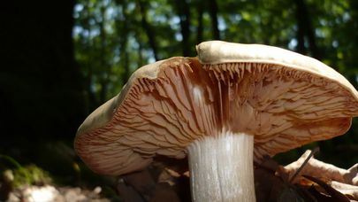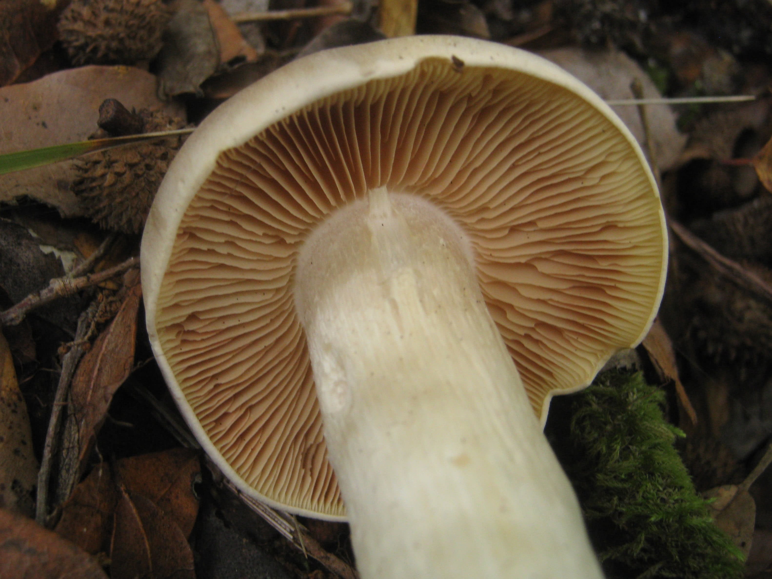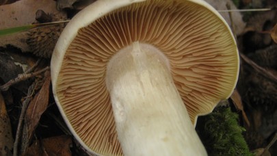 D'un blanc jaunâtre au départ, les branchies sinueuses et serrées de l'Entoloma sinuatum deviennent plus rosées à mesure que les spores mûrissent.