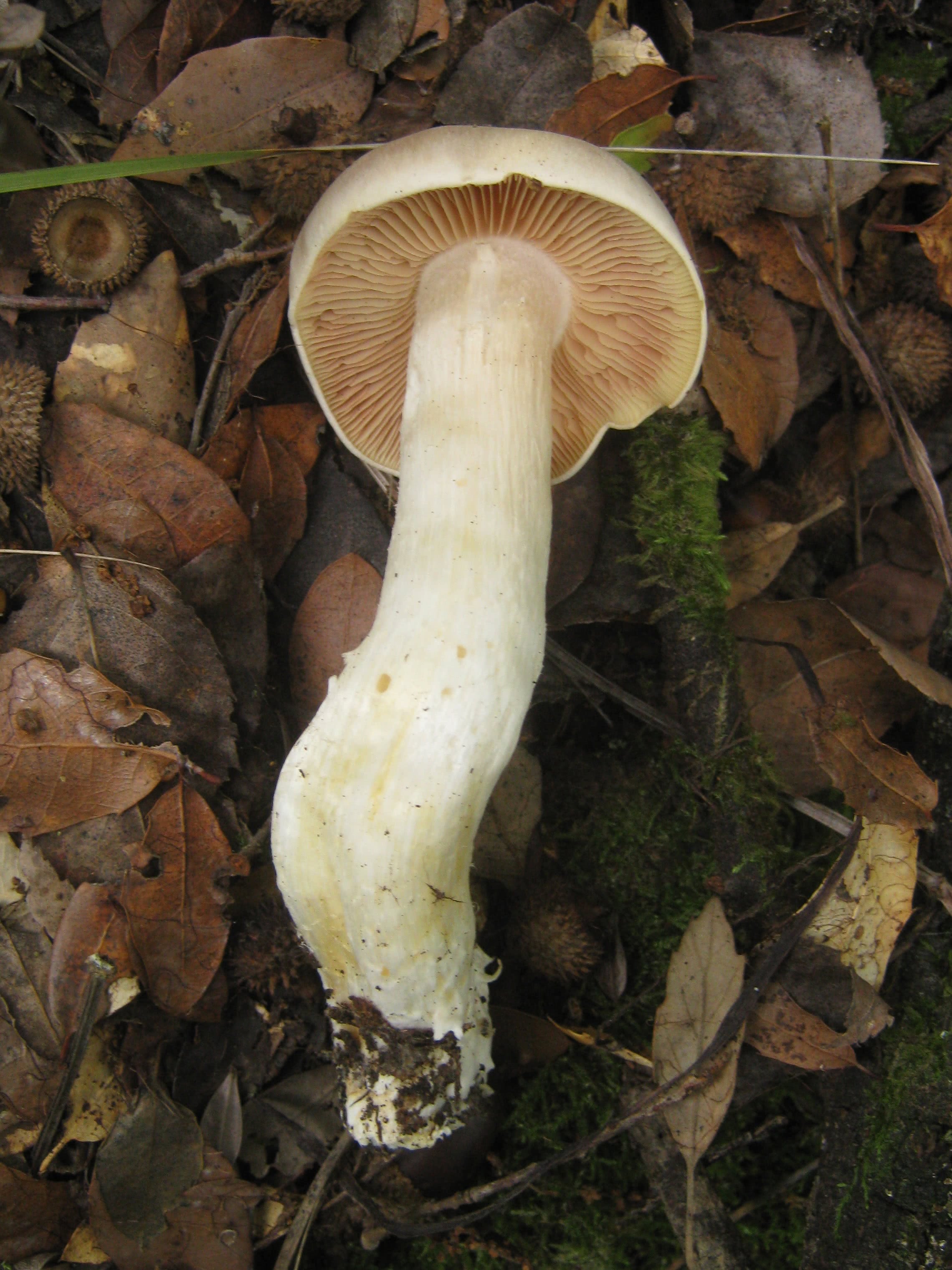 Apparaissant à la fin de l'été et en automne, les corps fructifères se trouvent dans les forêts de feuillus sur des sols argileux ou calcaires, ou dans les parcs avoisinants, parfois sous la forme de cercles de fées. De forme solide, ils ressemblent aux membres du genre Tricholoma. Le chapeau, de couleur ivoire à gris-brun clair, mesure jusqu'à 20 cm de diamètre et sa marge est enroulée vers l'intérieur. Les branchies sinueuses sont pâles et souvent jaunâtres, devenant roses au fur et à mesure que les spores se développent. La tige épaisse et blanchâtre n'a pas d'anneau.