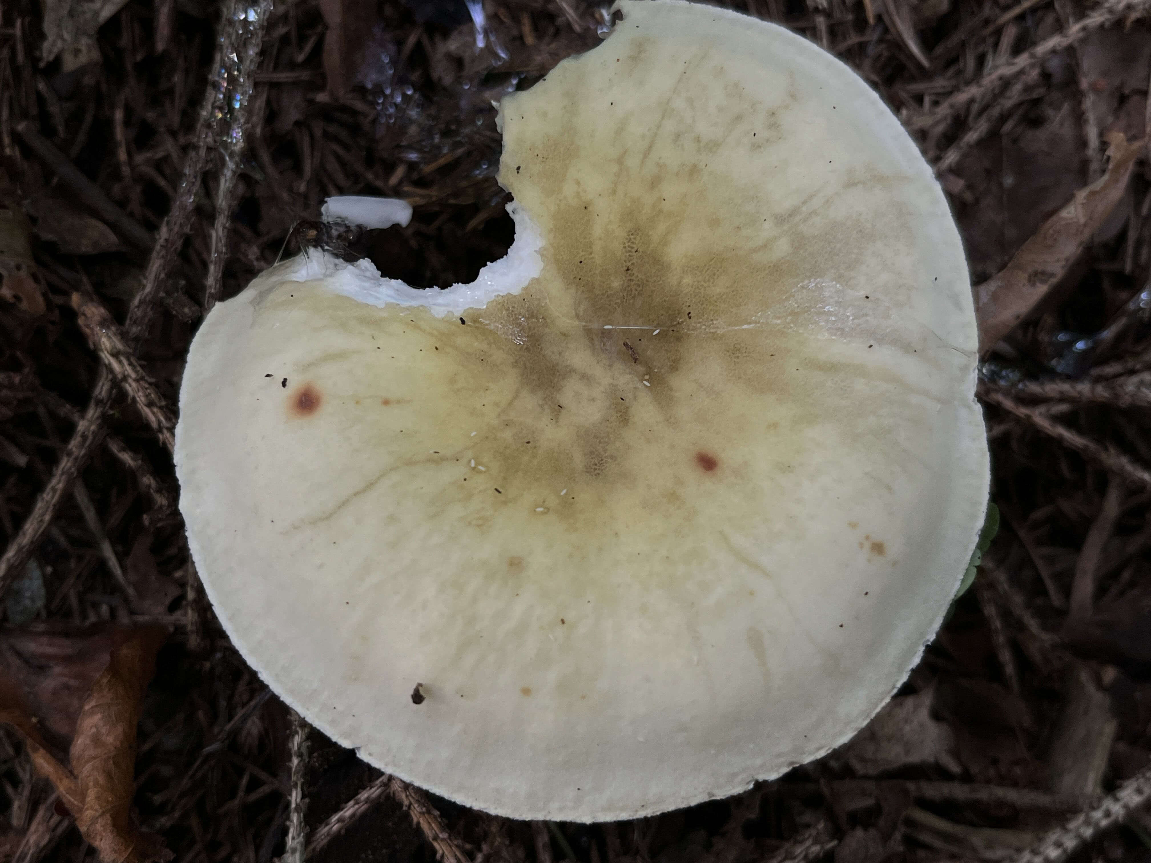 Odeur forte de pomme de terre crue et fragments de voile brun-crème sur le chapeau.