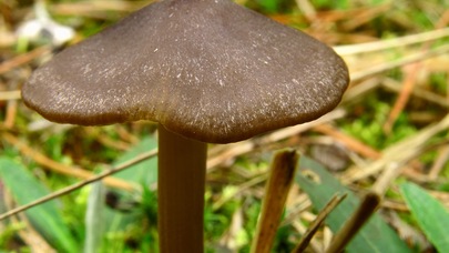 2-5.5 cm ; conique à largement conique, s'aplatissant quelque peu mais conservant un "mamelon" central pointu ; sec ; soyeux à presque chauve ; semblant parfois avoir de la brillance ; brun foncé à brun moyen ; la marge devenant légèrement lignée avec l'âge.