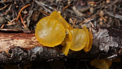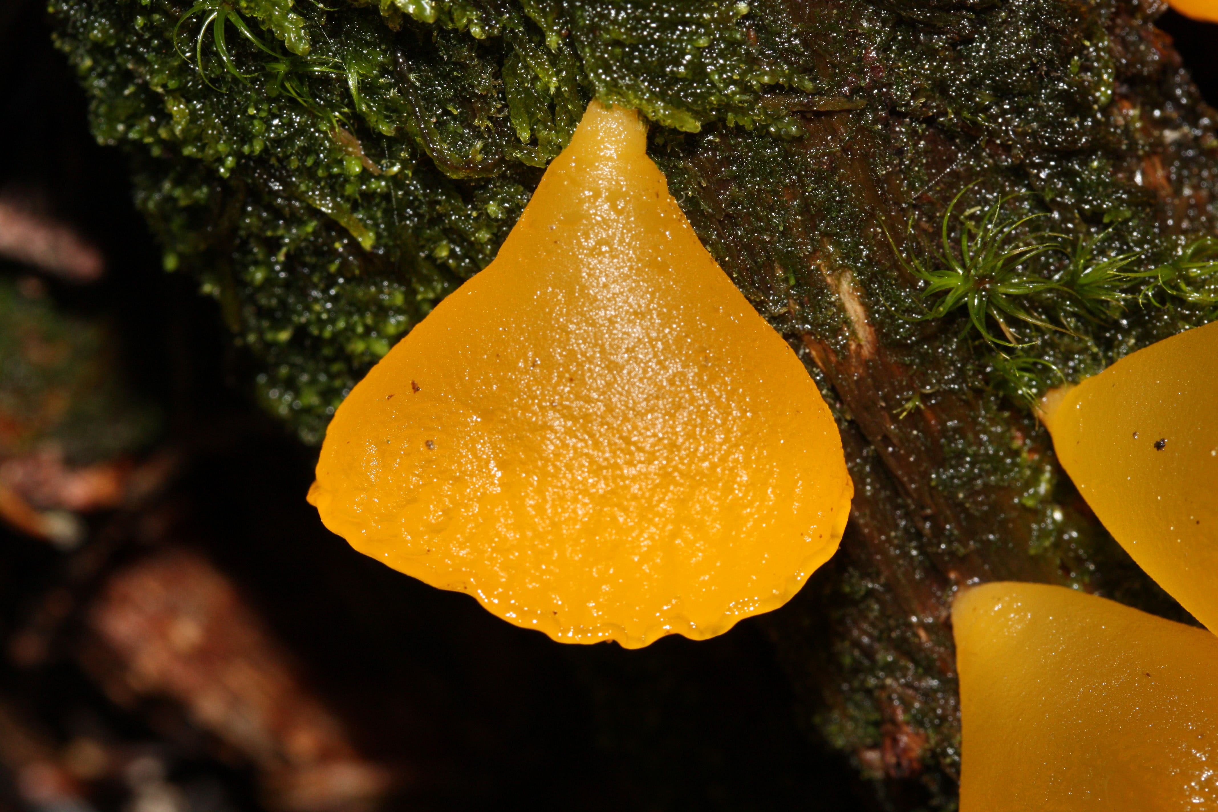 Guepiniopsis alpine (syn. Heterotextus alpinus) consiste en des fructifications gélatineuses, lisses et légèrement collantes, de couleur jaune à jaune-orange, en forme de cône. Elles sont saprotrophes et se rencontrent sur du bois de conifère en décomposition, sans écorce, surtout après une bonne pluie en fin d'été et en automne. La comestibilité est inconnue. Un autre Guepiniopsis commun est G. buccina, qui a une tige côtelée.