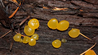 Orangée à jaunâtre ; gélatineuse et légèrement caoutchouteuse.