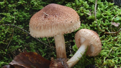 Tricholoma vaccinum est un champignon du genre agaric Tricholoma. Il produit des corps fructifères (champignons) de taille moyenne qui, lorsqu'ils sont jeunes, ont un chapeau poilu brun-rougeâtre distinctif avec une marge hirsute. Le chapeau, qui peut atteindre un diamètre de 6 cm, est un élément essentiel de l'identité de l'espèce.5 cm (2.6 in) de large, se fragmente en écailles aplaties à maturité. Ses branchies sont de couleur crème à rosâtre avec des taches brunes. Son stipe fibreux et creux est blanc sur le dessus et brun rougeâtre sur le dessous, et mesure de 4 à 7 cm.5 cm (1.6 à 3.0 in) de long.