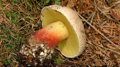 Caloboletus calopus est un champignon de la famille des bolets que l'on trouve en Asie, en Europe du Nord et en Amérique du Nord. Apparaissant dans les forêts de conifères et de feuillus en été et en automne, les corps robustes des fruits sont d'une couleur attrayante, avec un chapeau beige à olive mesurant jusqu'à 15 cm de diamètre, des pores jaunes et un stipe rougeâtre mesurant jusqu'à 15 cm de long et 5 cm de large. La chair jaune pâle se colore de bleu lorsqu'elle est cassée ou meurtrie. On la trouve souvent sous les chênes ainsi que sous les hêtres, mais presque toujours sur un sol calcaire.