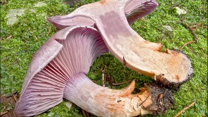 Le chapeau, les branchies et le pédoncule sont d'un violet foncé, et la chair est d'un violet beaucoup plus profond.