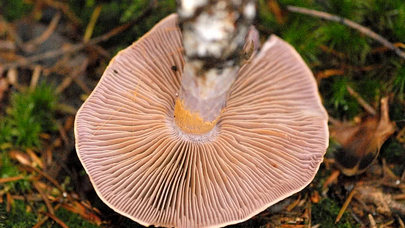 Les branchies adnées sont d'abord lilas pâle, puis deviennent brun rouille à mesure que les spores mûrissent.