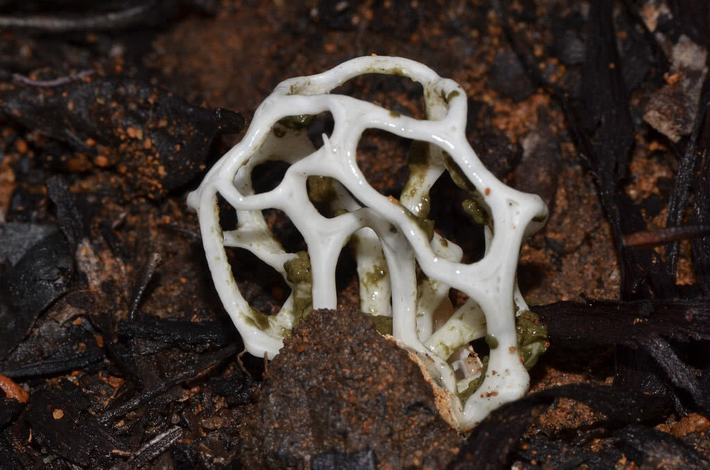 Ileodicyton gracile est commun dans les forêts et les bois, les landes côtières et les zones urbaines dans tout le sud-ouest. Il appartient à un groupe communément appelé "stinkhorns". La structure en forme de panier grillagé se développe à l'intérieur d'un réceptacle sphérique ou "œuf" d'où elle jaillit dans les derniers stades de son développement. Les "œufs" peuvent se développer pour atteindre un diamètre d'environ 30 mm. Le panier entièrement développé, mais très serré, finit par apparaître (à l'avant gauche) et s'étend rapidement jusqu'à atteindre un diamètre d'environ 80 mm lorsque l'"œuf" se fend.