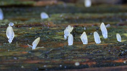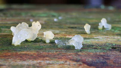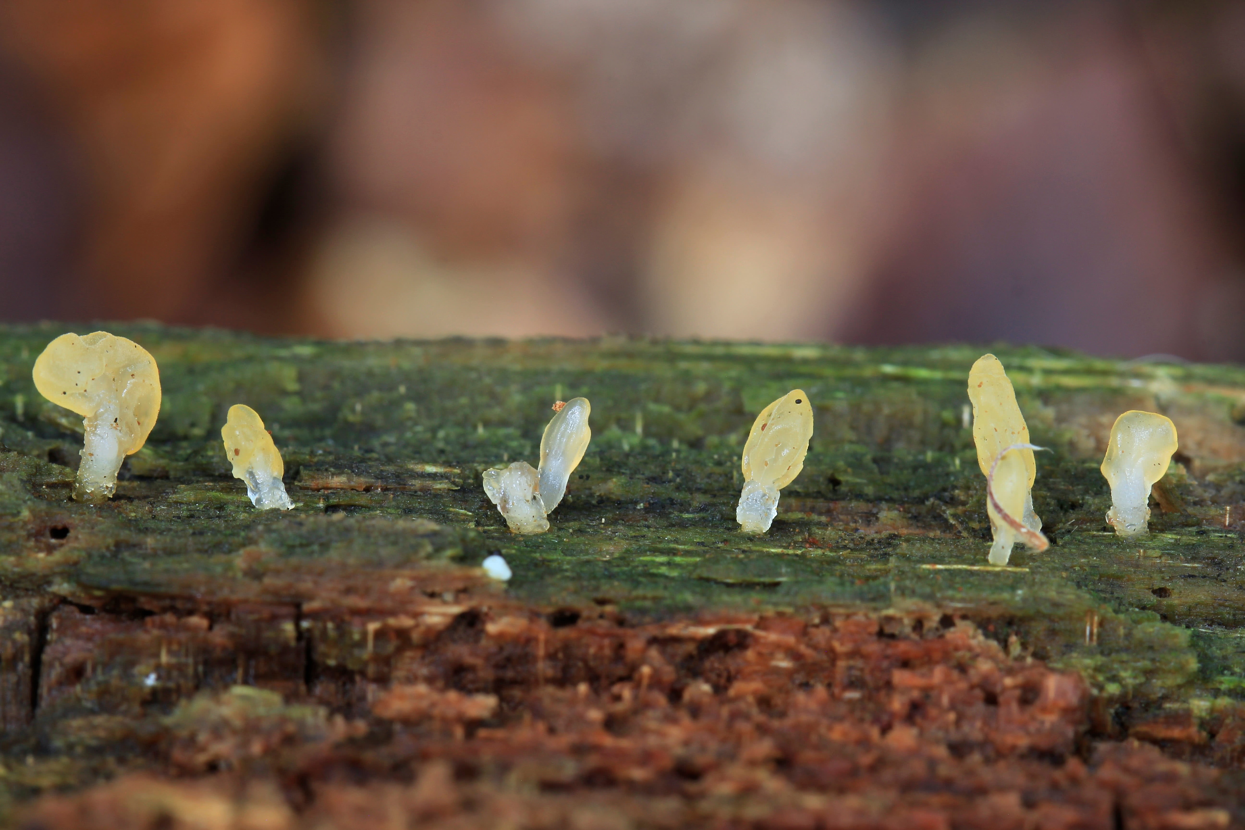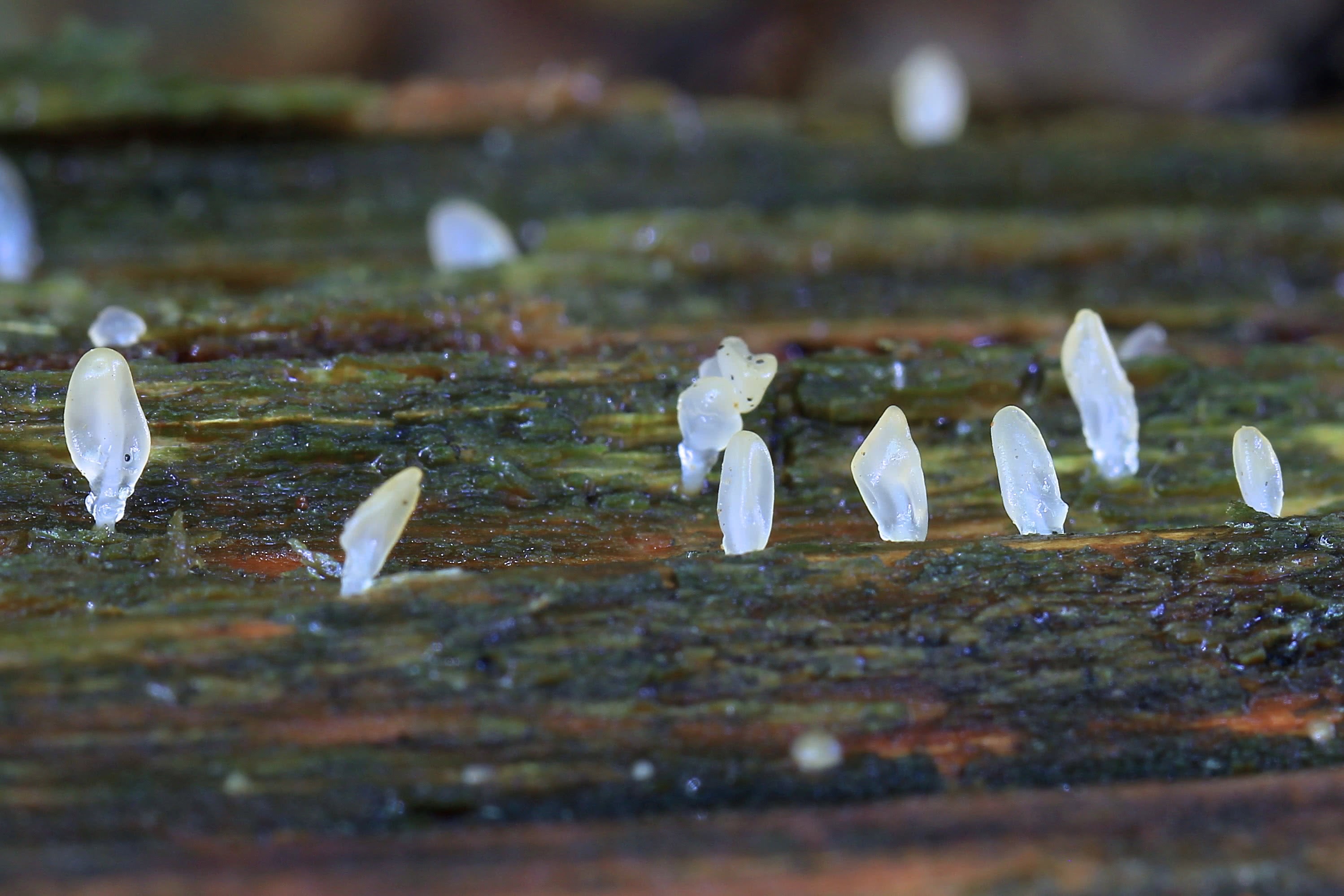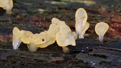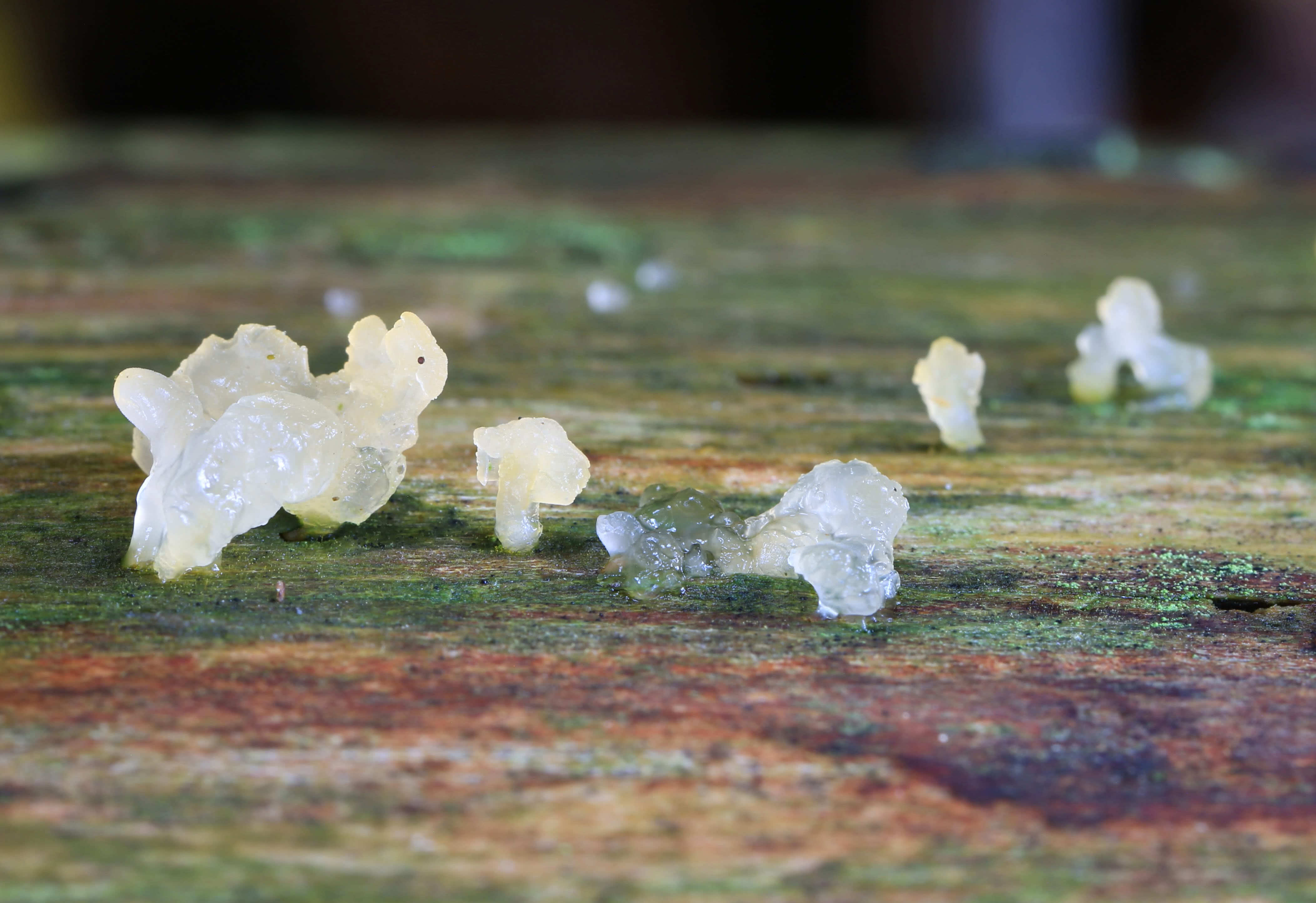 Initialement jaune pâle translucide (parfois orange), devenant plus pâle ; de forme irrégulière mais avec des pointes arrondies plutôt que pointues ; grasses et visqueuses ; parfois fourchues ; regroupées en groupes non fusionnants ; 2 à 10 mm de haut et généralement 1 à 2 mm de diamètre. Texture caoutchouteuse et gélatineuse.