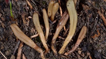 Microglossum olivaceum une espèce de champignon appartenant à la famille des Geoglossaceae. Les langues de terre sont l'un des groupes de champignons qui indiquent la présence de vieilles prairies non fertilisées. Contrairement à la plupart des autres membres de ce groupe, cette espèce est généralement facile à identifier en raison de ses couleurs inhabituelles. Ces petites langues de terre verdâtres ou brunâtres ne sont pas seulement rares, elles sont aussi très petites et bien camouflées sur le fond de mousses et de feuilles de plantes dans les types de prairies non améliorées dans lesquelles elles se trouvent. Présente dans les anciennes prairies semi-naturelles, dans des habitats allant des prairies acides d'altitude aux dunes, en passant par les prairies neutres et les habitats artificiels tels que les cimetières.