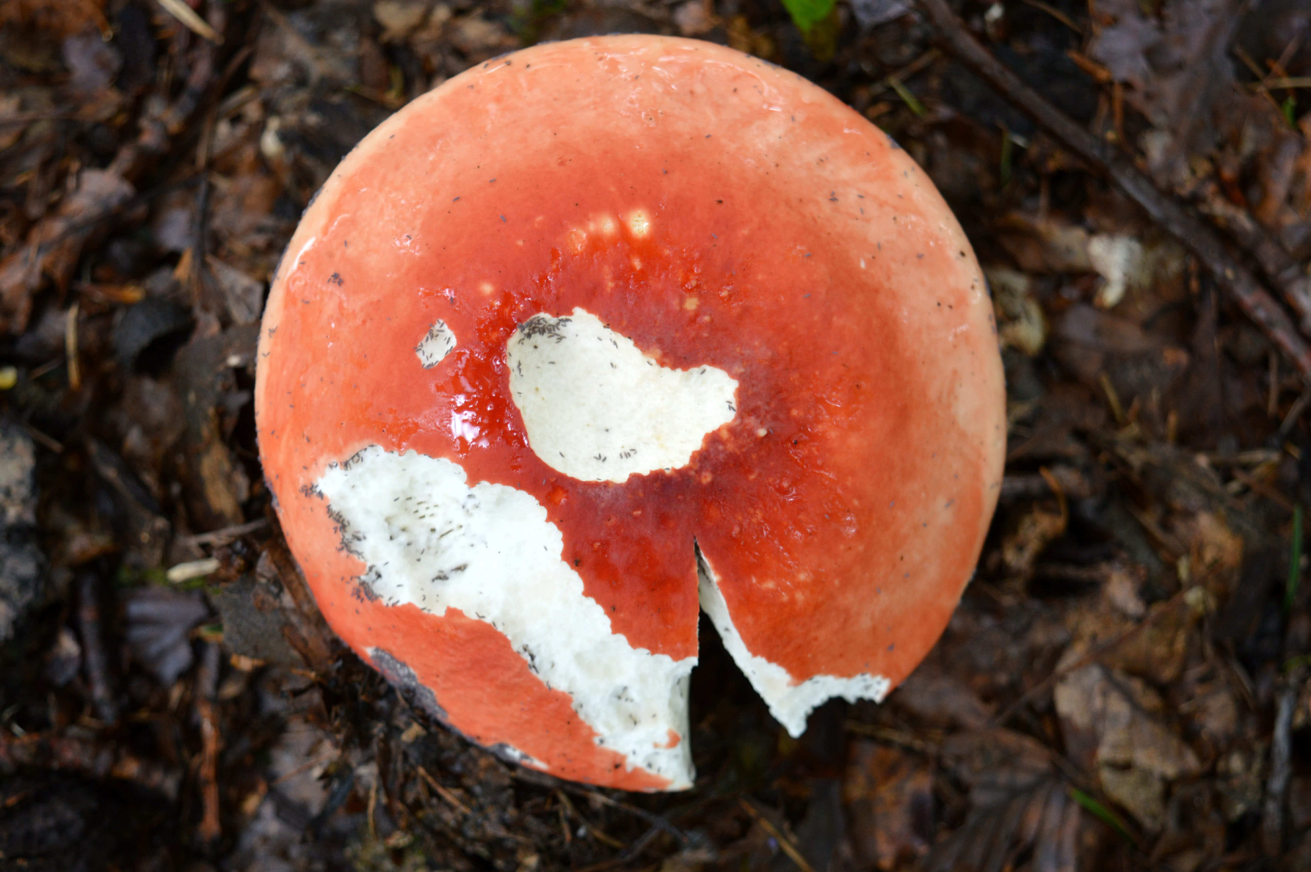 Russula emetica se trouve sous les conifères ; son chapeau devient déprimé à maturité et la cuticule du chapeau se détache plus facilement. Elle est tout aussi toxique que Russula nobilis et doit donc être évitée lors de la cueillette de champignons pour l'alimentation.